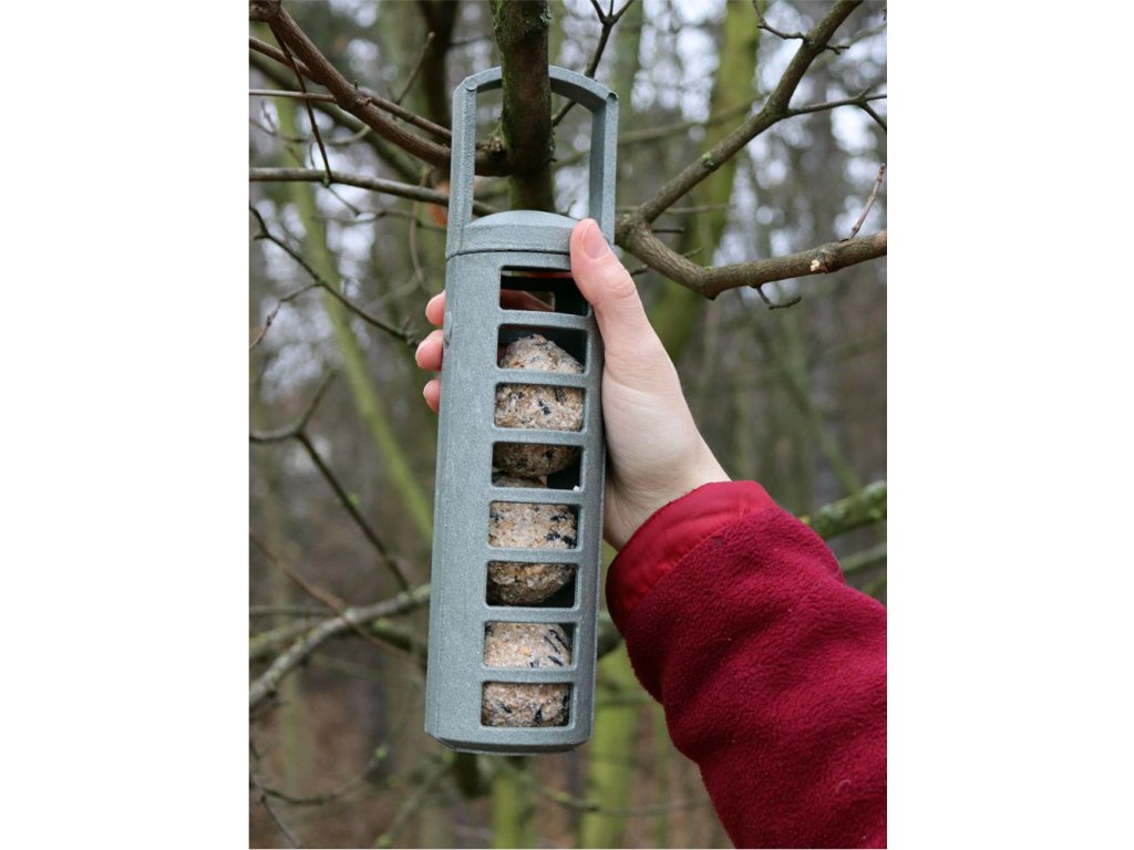 Krmítko má chytrý tvar, díky kterému z něj krmivo zbytečně nevypadává a lojové koule se méně drolí. Nahoře je praktický otvor pro snadné zavěšení na větev, háček nebo jiný držák. Ptáci se navíc pohodlně zachytí za otvory a krmítko si oblíbí hlavně sýkory, vrabci, brhlíci, mlynaříci a další menší druhy ptáků, které vyhledávají závěsná krmítka.