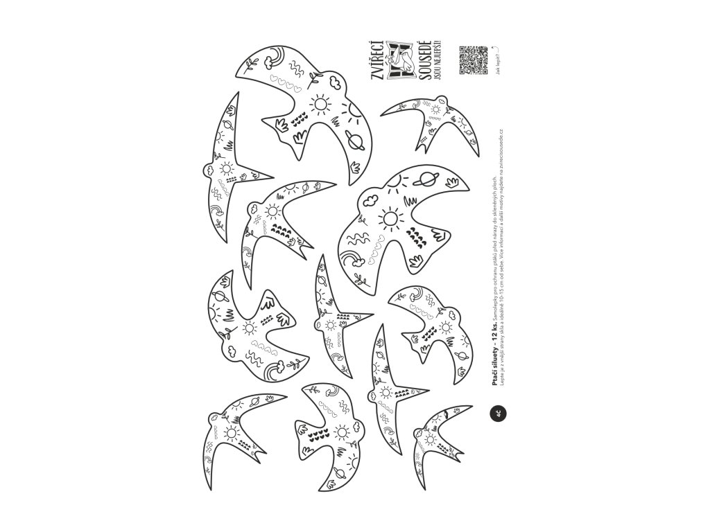 Samolepky na sklo – Ptačí siluety s obrázky (černé, s lepidlem, 12 ks)
