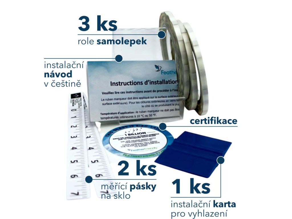 - 2× papírové měřicí pásky pro instalaci samolepek na okno.