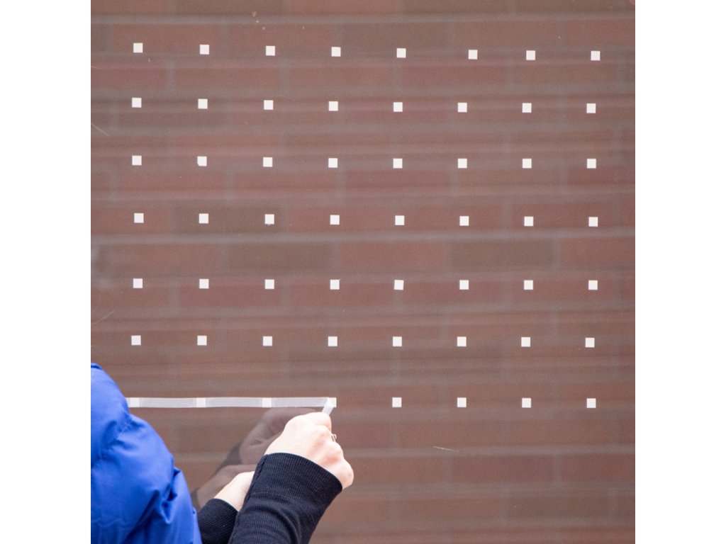 - Snadná aplikace bez potřeby odborné montáže – páska se jednoduše nalepí na sklo, uhladí a poté sloupne. Na skle zůstanou pouze tečky (značky), které chrání ptáky před nárazem. Podrobný návod najdete ve videu.